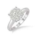Mesmerize her with the everlasting elegance and eternal shine of this ravishing 14 karat white gold lovebright diamond ring. Featuring an invisible set round cut diamond at the centre haloed by 8 round cut diamonds, perfectly invisible set. Total diamond weight is 1/3 ctw.