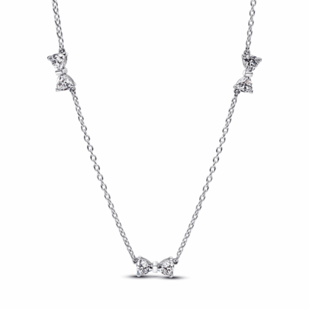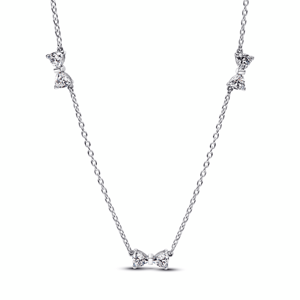 Some ties never come undone. Get wrapped up in our bow necklace, made of sterling silver and set with sparkling cubic zirconia.