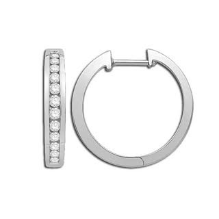 Round Cut Channel Diamond Hoop Earrings in 14K White Gold or Yellow Gold