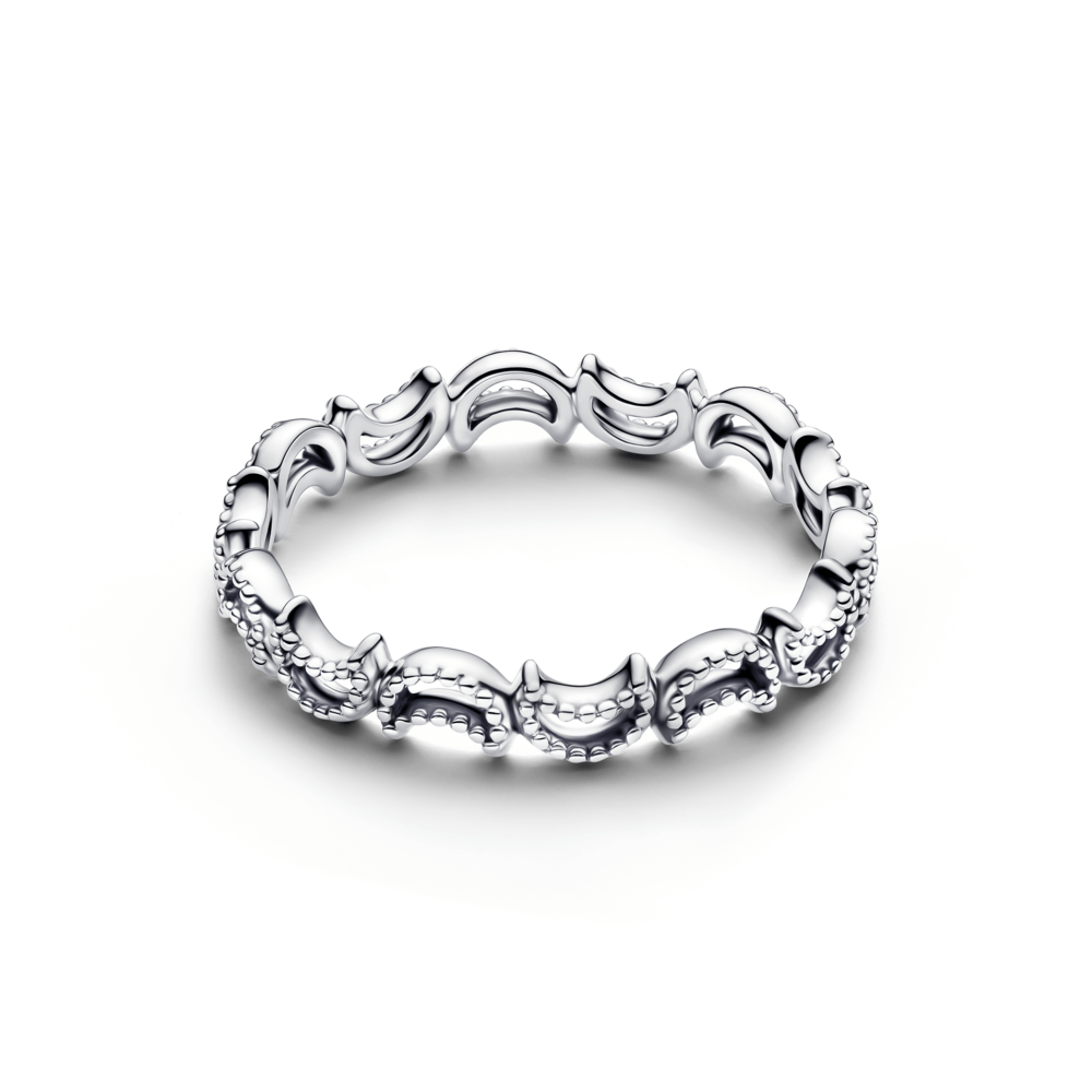 Carry the magic of the night sky. Our sterling silver crescent moon ring features a row of connected moons set with beads.