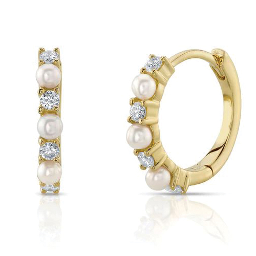 0.14CT 14K Y/G DIAMOND & CULTURED PEARL HUGGIE EARRING