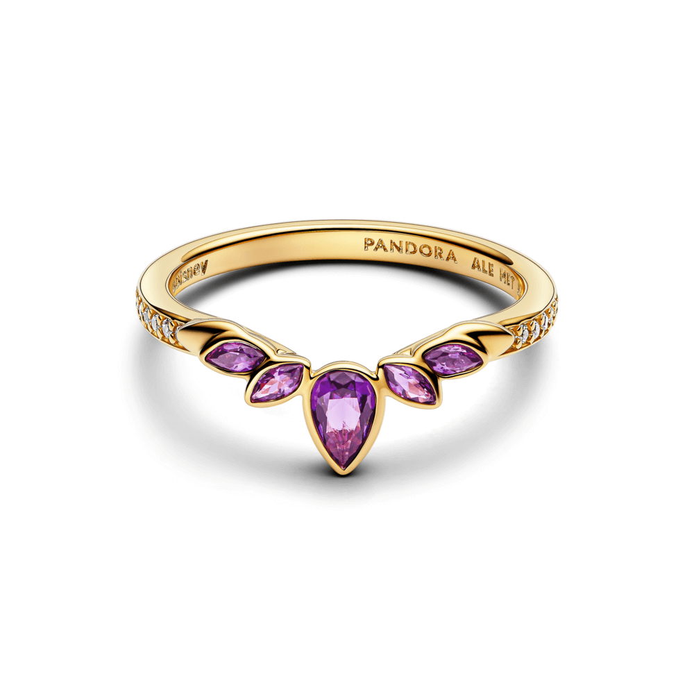Show your love for Disney’s Frozen with our 14K gold-plated tiara ring. Inspired by Queen Anna’s warmth and bubbly spirt, this ring features a constellation of violet-colored stones that reflect light.