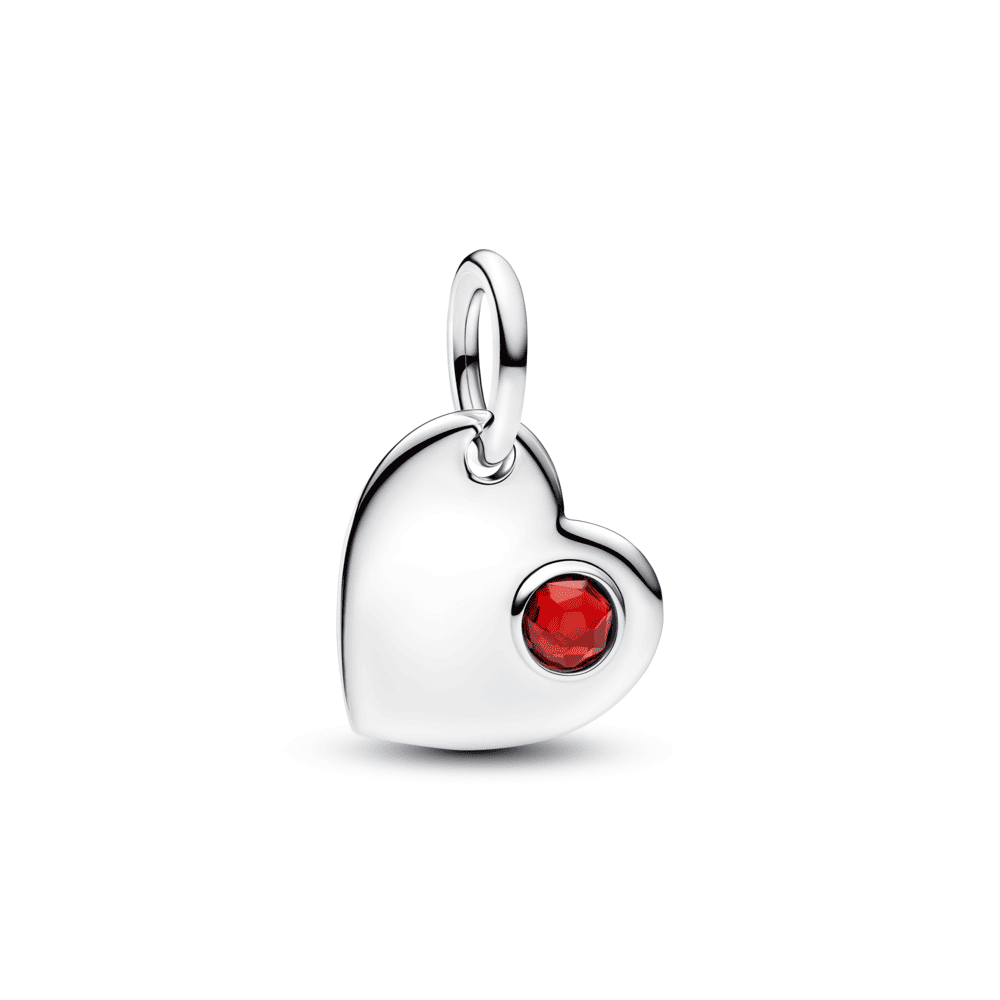 Wear your heart on your sleeve, literally. This sterling silver charm features a red man-made crystal with an engravable back