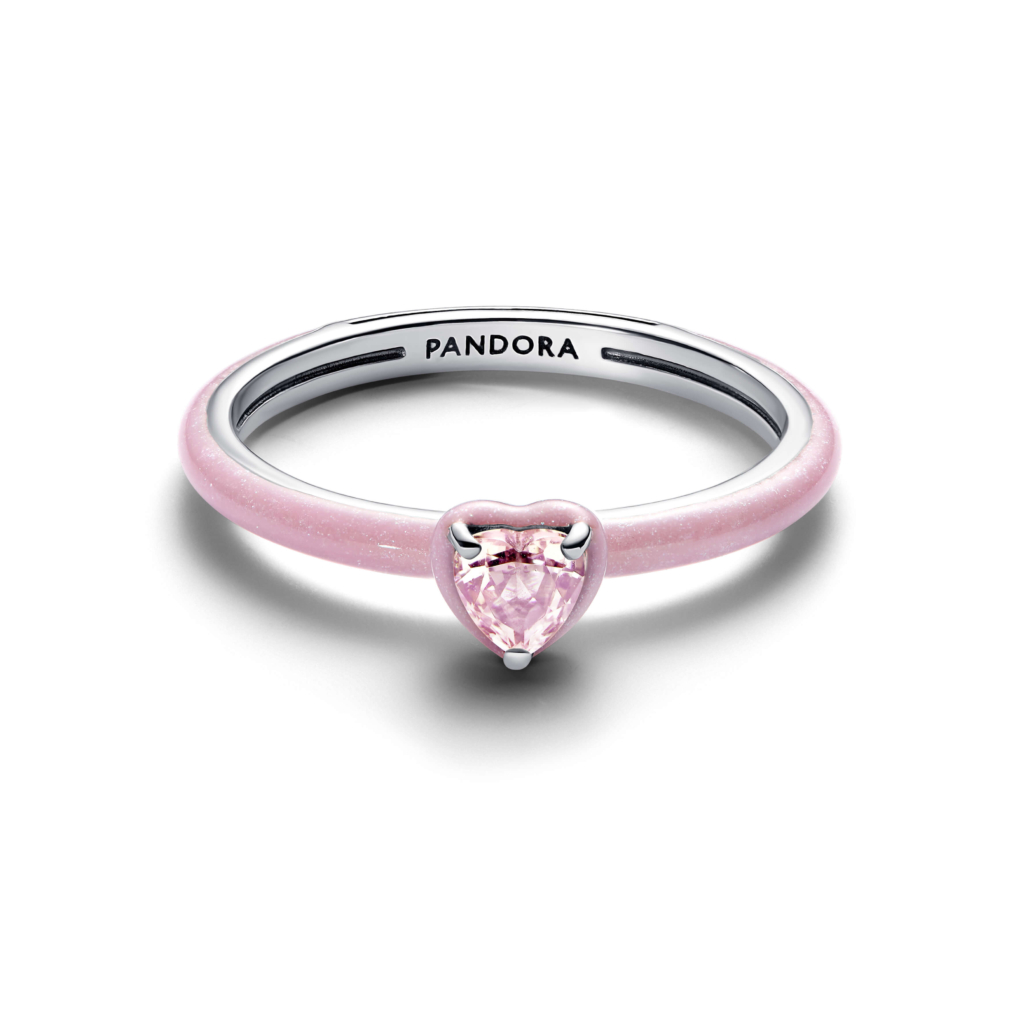 Think pink always, with this bright, love-inspired ring. Crafted from sterling silver, the ring features a prong-set heart-shaped pink crystal, surrounded by glittering pink enamel. The partly enamelled band adds a playful touch, while the heart motif embodies the spirit of self-love, making it a perfect reminder to carry with you every day.