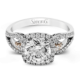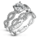 Featuring a modern take on a classic design, this white gold engagement ring and wedding band are inset with .58 ctw of glimmering round cut white diamonds. Center stone not inculded. Different gold colors are available for special order.